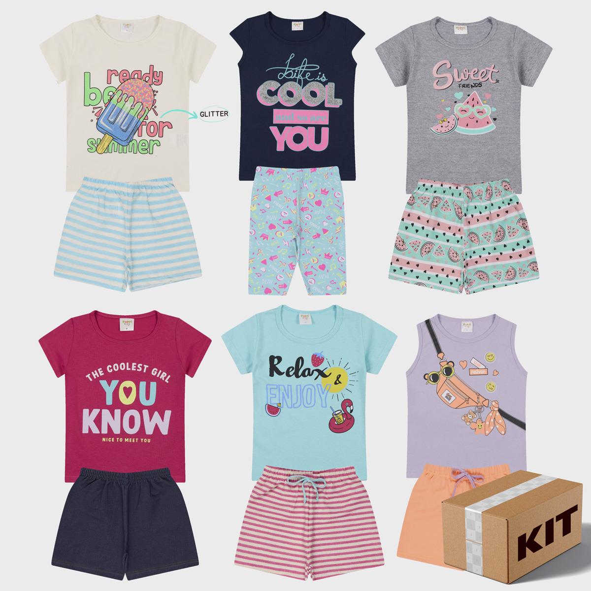 Kit com 3 conjuntos sortidos em modelos, cores e estampas Contém 1 peça de cada tamanho (grade palito) Tam.1 : 1 peça - Tam.2 : 1 peça - Tam.3 : 1 peça Meia Malha 30/1
